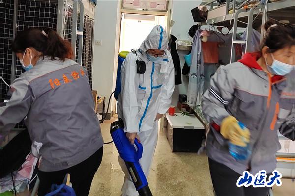 在三天静态管理当中,学生盒餐进楼,各公寓楼生活垃圾剧增,而保洁员又大量减少,这使公寓楼内清运、清扫工作十分繁重。为此,公寓所有人员都投入其中,6:00—22:30随时保洁,确保楼内垃圾不堆积,并完成一日2次公共区域的消杀工作和通风管理。公寓的保洁、楼管员穿梭于校园,服务于学生中间。学生的声声感谢,让返校季的校园充满温馨。