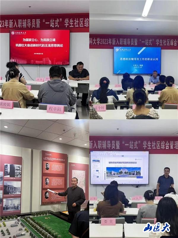 学校相关部门负责人就各自主管领域与参训人员互动交流。校党委宣传部部长侯小宝、学生工作部部长张晶、就业指导中心主任郭建锴、校团委副书记吴晓兵分别以“为国家立心,为民族立魂,巩固壮大奋进新时代的主流思想舆论”“思想政治辅导员工作的职业认同”“了解校史校情,感悟百年山医”“党建带班团建,班团建促党建”为题做了专题讲座。