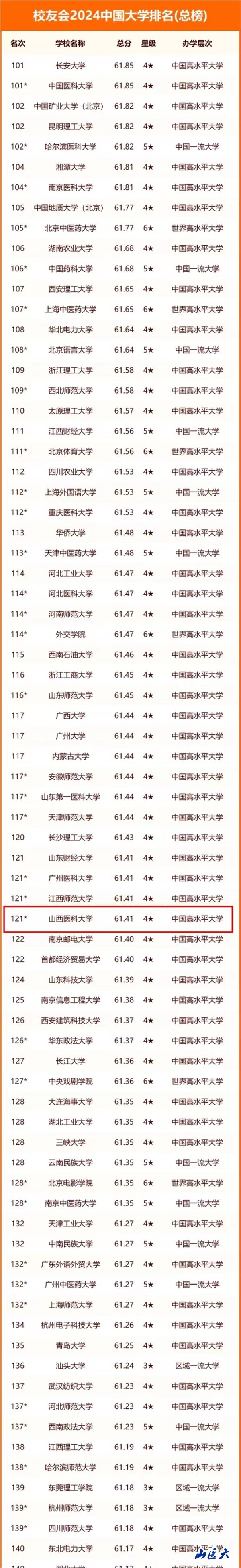 位列第121位!我校在2024校友会中国大学排名继续提升