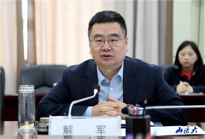 4月7日,我校与晋城市人民政府在迎泽校区教学办公楼第一会议室举行战略合作交流座谈会。校长解军、晋城市人民政府副市长邓志蓉出席座谈会并讲话。晋城市政府办公室、市卫生健康委、市教育局、市农业农村局、晋城市人民医院和学校办公室、教务部、人事部、科技部、研究生学院等部门和单位负责人参加会议。座谈会由校党委常委、副校长刘春主持。