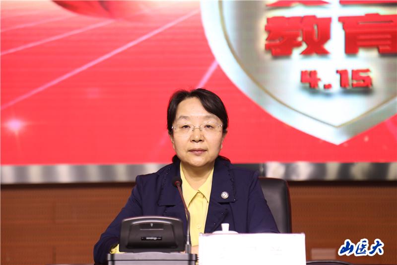 赵文军在主持讲话中指出,当今世界正处于百年未有之大变局,我国面临的安全形势越来越严峻复杂,维护国家安全和社会稳定任务日益繁重艰巨,每个人都要树立起维护国家安全的意识,作为山医人,一定要胸怀“国之大者”,挺膺担当,将维护国家安全的信念篆刻在心中,为国家安全建设事业贡献青春力量。