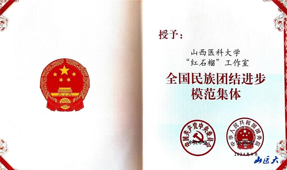 我校“红石榴”工作室自2018年成立以来,坚持以习近平新时代中国特色社会主义思想为指导,以立德树人为根本,以铸牢中华民族共同体意识为主线,构建了山医特色的民族团结进步教育综合实践模式,实现人心归聚、精神相依。2019年获评“山西省‘四爱四争’民族团结先进集体”,2022年被省委统战部评为“山西省第一批民族团结进步示范单位”,2023年被国家民委评为“第十批全国民族团结进步示范单位”。