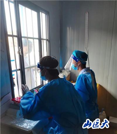下午,队员们进入了社区街道办公室内对返并的省内省外人员进行登记,认真摸排其行程轨迹,严格落实疫情防控政策,共同守护来之不易的防疫成果。随后,队员们对社区的老人进行了免费抽血检查,不仅学会了如何使用仪器进行采血,也通过实践活动真切的深入到基层组织和群众中,了解到了如今人们的生活在中国共产党的领导下变得越来越好,明白了身为青年学生、山医学生肩负的重任。