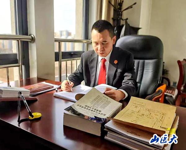 杨学武2004年7月毕业于我校法医学院,毕业后在介休市人民法院技术鉴定中心从事法医鉴定工作,后于2006年通过国家司法考试。他历任介休市人民法院技术鉴定中心科员、民二庭书记员、民二庭副庭长、审监庭负责人、义棠法庭庭长、审判委员会专职委员等职务。他履职尽责、恪守初心,勇挑重担、以身作则,带头多办案、用心办好案;他勤奋好学,心中有大局、司法接地气,积极钻研审判业务、探索案结事了新思路,让人民群众在每一起案件的办理中能够感受到他精益求精的专业素养和公正为民的司法温情;十多年来他办理的2000多件民事案件中无一起信访、投诉。