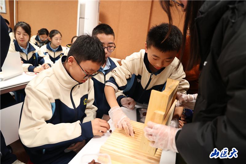 在动手操作环节,“艾灸无忧”大学生创新创业团队耐心指导同学们现场体验传统中成药片剂、香包和艾绒艾柱等制作过程。同学们纷纷化身小药剂师,过了一把中医药加工制作的“瘾”。