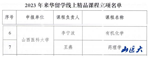 喜讯!我校《有机化学》和《药理学》获批山西省2023年来华留学线上精品课程