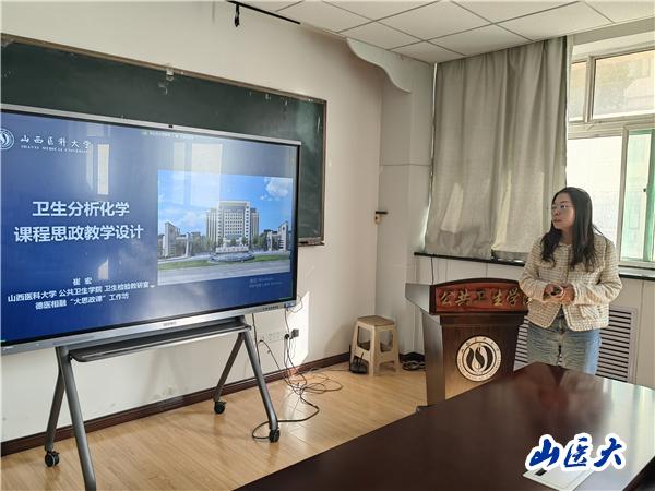 崔宏以《“善研求真,明理析变”——卫生分析化学课程思政教学设计》为题,具体分享了卫生分析化学课程思政设计及实施情况。该课程整体以促进全民健康为伦理旨归,以帮助医学生成长为主线,通过“三利用,一实现”,形成了“善研求真,明理析变”的特色思政教育理念。利用融入式教学在理论课堂有机融入思政元素,培养学生的科学职业观;利用互动式教学涵养学生的科研求真精神;利用实践性教学锻造学生的理智辨析能力,最终实现公共卫生专业人才知识、能力、素质的有效提升。
