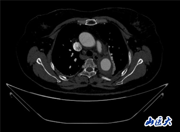 首例患者是一位55岁的女性,她患有高血压约2年时间,平时也会规律服用多种降压药,但血压控制始终不尽人意。2023年4月下午,她出现不明原因的头痛,在家拔罐缓解少许便未到医院就医,次日凌晨突感胸闷、胸背疼痛伴有呼吸困难等症状、家人急忙拨打了120,把患者送入医院急诊科进行救治,医生在急诊科行胸腹主动脉CTA时,显示主动脉弓部-降主动脉及腹主动脉壁间血肿,遂收治入医院血管外科,患者入院10天后复查血肿仍未有改善,依然伴有胸背部疼痛等不适,如不进一步处理,可能发展为夹层危及生命,患者及家属经过与医生团队了解沟通,决定进行创伤小、恢复快的介入手术治疗。张玮教授、符伟国教授、董红霖教授及其血管外科团队(闫盛、常文凯、田琴琴)共同商讨手术方案,最终确定使用Zipper™一体式主动脉弓覆膜支架系统,行胸主动脉覆膜支架腔内隔绝术+无名动脉、左颈总动脉、左锁骨下动脉分支重建术为患者进行治疗。董红霖教授及其血管外科团队根据患者术前头颅CT平扫提示双侧侧脑室旁缺血灶,血压控制不稳定,属夹层壁间血肿非典型夹层等风险点,制定了完整的手术方案,术中经股动脉置入Zipper支架主体,经预留导丝超选无名动脉,并确保主体支架对位准确,顺利置入左颈总动脉、左锁骨下动脉支架,重建弓上三分支。手术过程非常顺利。术后观察主动脉及分支覆膜支架定位准确;无内漏;分支支架通畅,动脉供血正常。