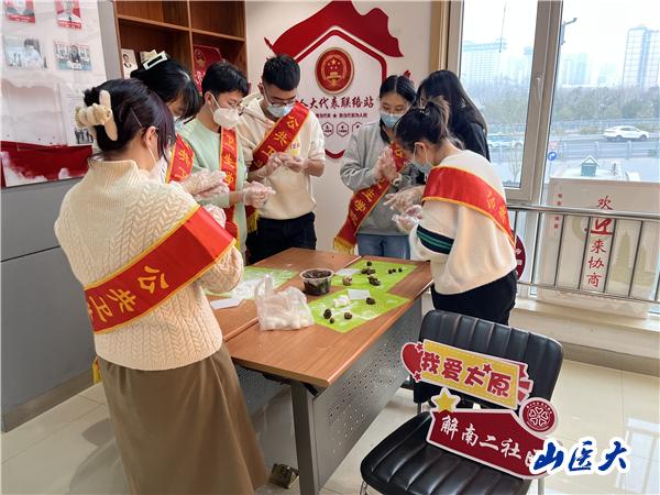 为深入学习宣传贯彻党的二十大精神,引导青年学生践行社会主义核心价值观,积极弘扬中华优秀传统文化,1月12日,公共卫生学院分团委组织13名学生前往学院的“思想政治教育实践基地”--太原市迎泽区解放南路二社区,开展新春送祝福志愿服务活动。