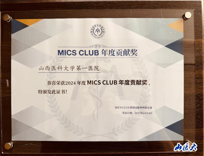 我校第一医院在第六届中国微创冠脉外科研讨会MICSS2025荣获年度贡献奖