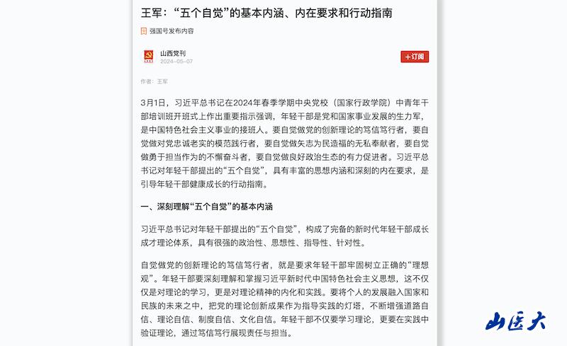 学习强国 | 王军:“五个自觉”的基本内涵、内在要求和行动指南