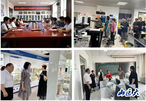我校基础医学院参会人员分别从学科建设、人才育引、教师考核、教师发展、科研管理、学生工作等多方面探讨交流。调研组在首都医科大学基础医学院领导、老师们陪同下,参观了首医国家级实验教学示范中心实验室和基础科研楼。