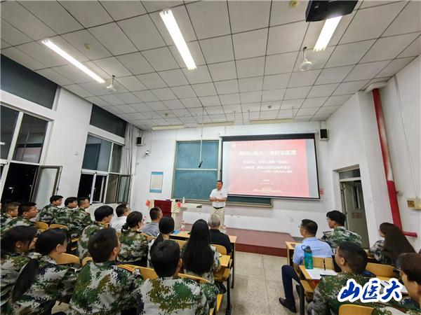 讲座中,赵国卿以一位退伍老兵的身份,围绕“体验军训,系好山医第一粒纽扣;心存戒律,奠定法医职业操守基石“,从历史观、现实观、未来观等角度为法医学院的学生们讲述了如何确定人生发展方向。从历史观来看,军人的信仰、秉持是神圣的,同样也是法医职业要求的最高境界;从现实观来看,遵规守纪,严于律己,既是青年学子成长的基本要求,也是法医人才培养的基本内涵;从未来观来看,听党话、跟党走,全心全意为人民服务,法医职业前景才能更加光明。最后,他用包拯的诗“清心为治本,直道是身谋。秀干终成栋,精钢不作钩”来激励同学们自勉自励,坚守原则,做好山医人,走好法医路。