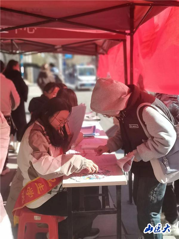 “携手防艾,你我同在”红丝带寄祝福活动中,同学们把对艾滋病人的关爱寄托在红丝带中,小小的红丝带承载着山医学子们抗艾的决心,被红丝带贴满的宣传板体现了同学们对预艾防艾事业的美好愿景。在“预艾防艾,从我做起”签名倡议活动中,志愿者们为大家讲解了艾滋病的相关知识,帮助同学们更加了解艾滋病。同学们纷纷签名,表达了对防艾事业的支持。