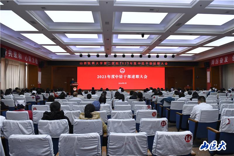 为强化干部队伍建设,增强医院凝聚力和战斗力,谱写医院高质量发展新篇章,我校第二医院于1月8日至12日召开2023年度中层干部集中述职大会。全体院领导班子成员出席会议,全院科主任、护士长、党支部书记参加会议。会议由第二医院党委书记成晓龙主持。