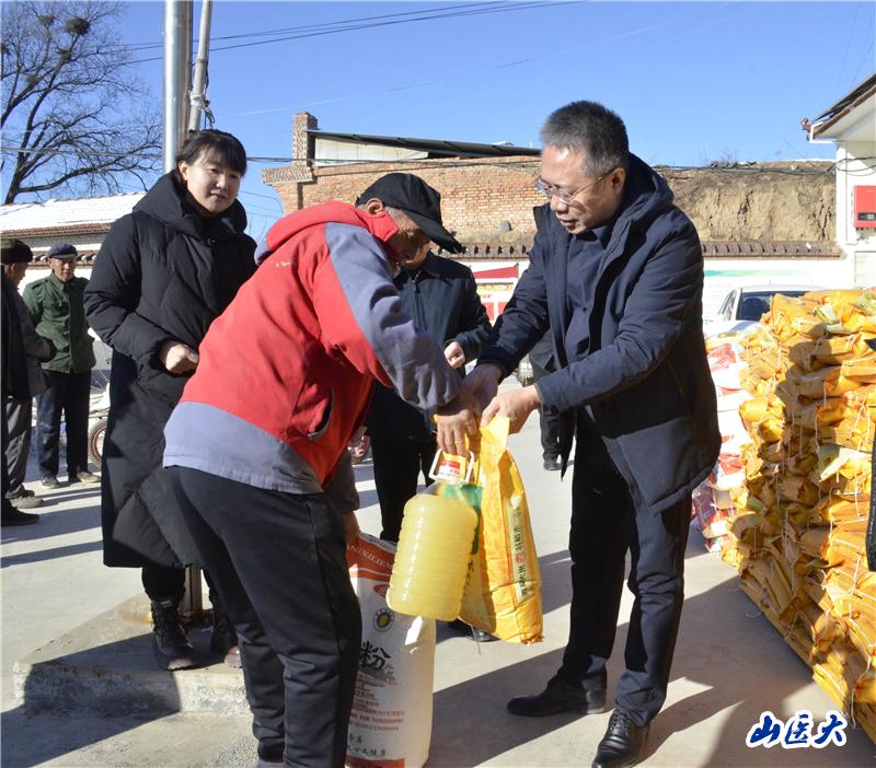 岁末寒冬,春节将至。1月23日,我校第二医院党委书记成晓龙带领人事处等相关部门人员深入医院定点帮扶的武乡县丰州镇郝家垴村开展“迎春节 送温暖”慰问活动。