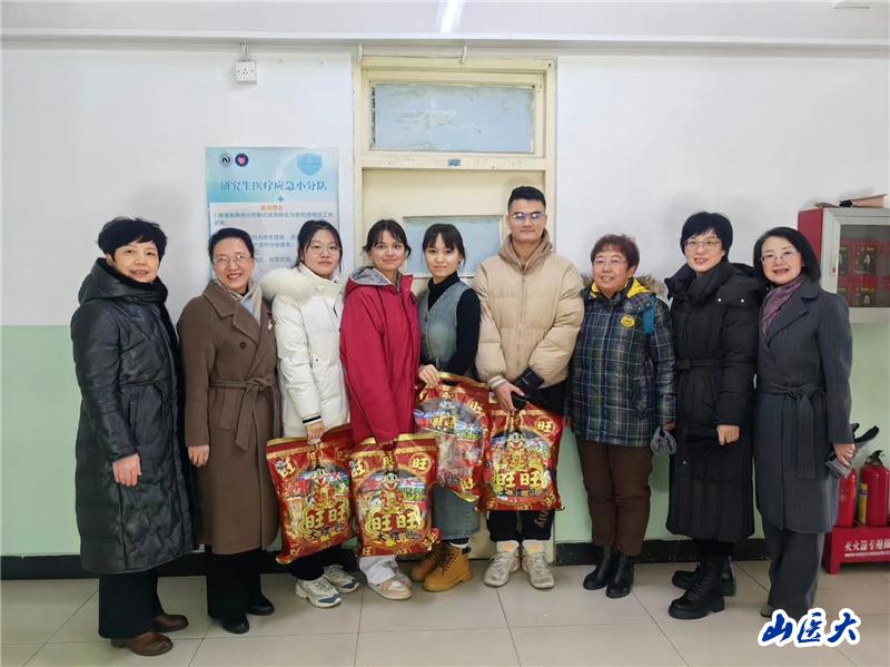 2月2日上午,我校护理学院领导班子全体成员来到迎泽校区,为春节新疆籍留校实习生发放暖心礼包,为寒冬添上一抹暖意。
