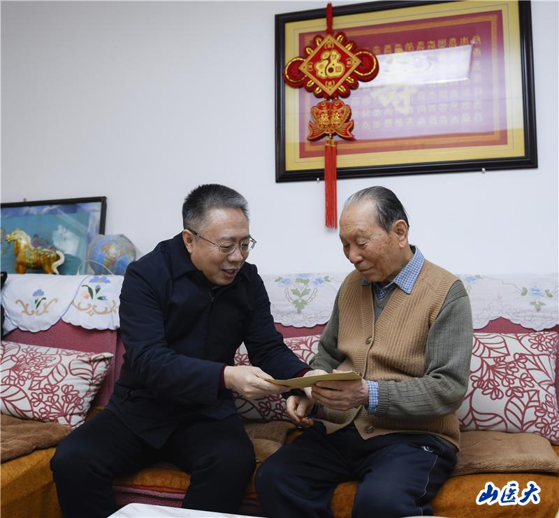 2月2日上午,我校第二医院党委书记成晓龙、党委副书记魏永红走访慰问了医院老党员,向他们送去院党委的关怀与温暖,致以节日问候和美好祝福,并送去慰问金。离退休党总支、老干部科、党院办负责人和老党员所在离退休党支部书记陪同慰问。