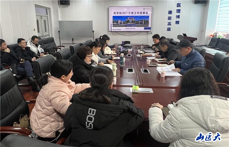 2月29日上午,药学院在中都校区明德楼A座403会议室召开了学院2024年度工作部署会。院领导班子、教研室主任、党支部书记、科级以上干部参加了会议。会议由副院长(主持工作)侯锐钢主持。
