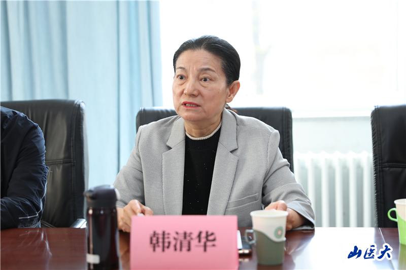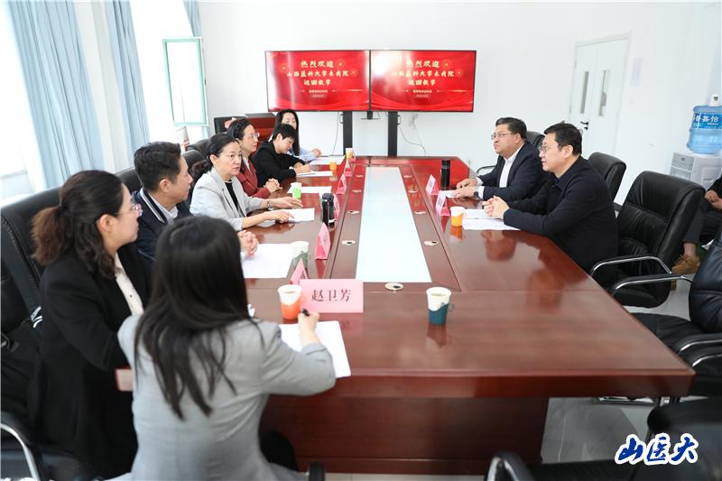 韩清华与阳煤集团总医院郭瑞斌、庞跃锋副院长及科教科负责人、生产实习学生开展了座谈交流会。郭瑞斌对第一临床医学院一行到来表示热烈欢迎,介绍了阳煤集团总医院发展情况,希望借此巡回教学机会给予针对性指导。韩清华从医院定位、学科建设、人才队伍、科研能力等方面介绍了第一临床医学院概况,详细讲解了开启五年制临床专业本科生课间见习模式改革、将“3+2”调整为“2.5+2.5”课间见习培养模式的优势,并与生产实习学生及带教教师进行了交流。
